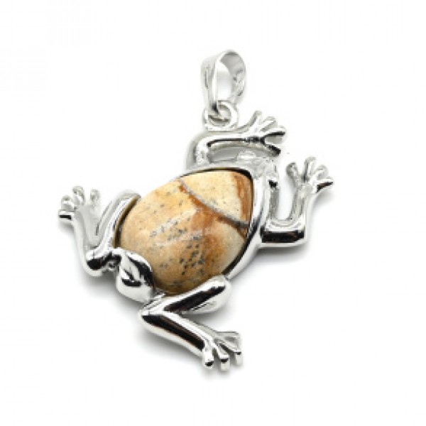 • Кулон Лягушка 30*30мм с яшмой песочной