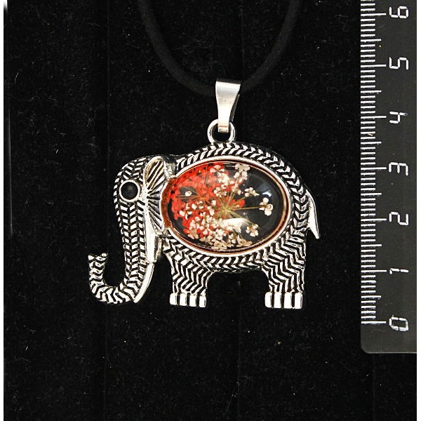 Кулон c кабошоном из пластика "два цветка", цвет красный, овал 25х18мм, "слон"