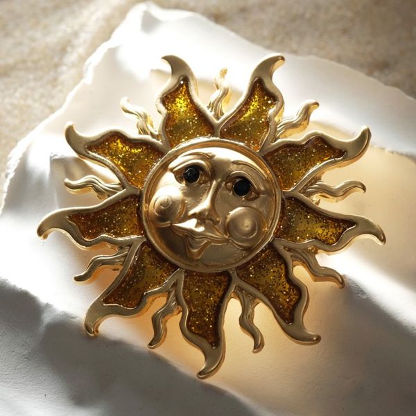 • Брошь "Солнце", цвет чёрно-золотой в матовом золоте