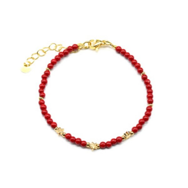 Браслет из бисера "Звезды" шарик 3мм цвет красный, 17см. (иск.)