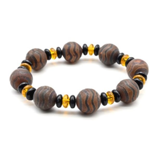 Браслет с бусинами дзи "Волна" шарик 14мм