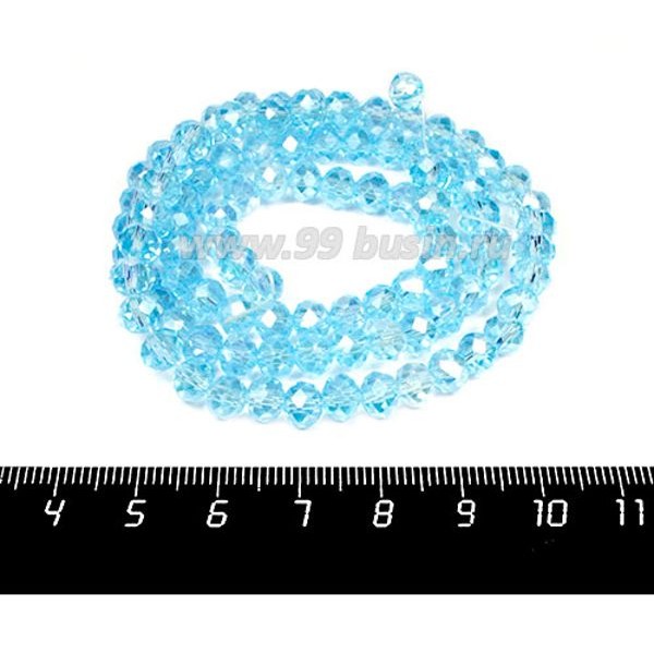 Бусина хрустальная Рондель 6*4 мм светлая морская волна/перламутр около 100 штук/нить