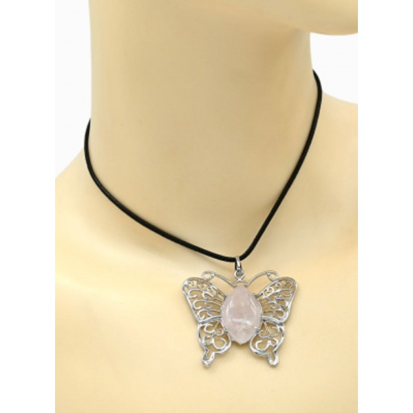 Кулон Бабочка 45*40мм с розовым кварцем в металле