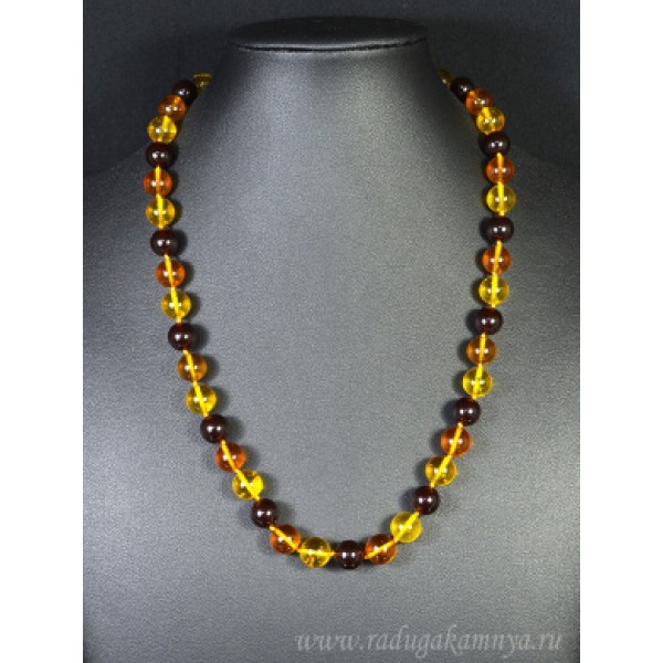 Бусы из янтаря шарик 10мм лимонный, медовый, вишня, 52см