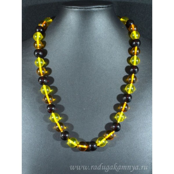 Бусы из янтаря шарик 12мм лимонный, св.коньячный, вишня, 54см