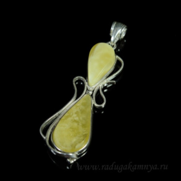 • Кулон с янтарём в посеребрении "кошечка" 20*58мм медово-молочный.