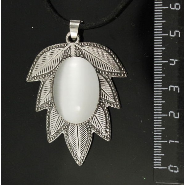 • Кулон из кошачьего глаза белого (иск.) "лист", цвет ант. серебро, овал 25х18мм