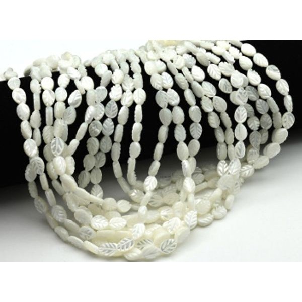 Бусины из перламутра лист 6*8мм цвет белый, 38см, 44 бусины