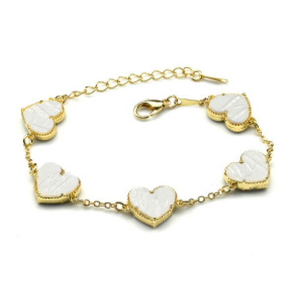 Браслет-цепочка "Сердечки" цвет белый, 17см (иск.)