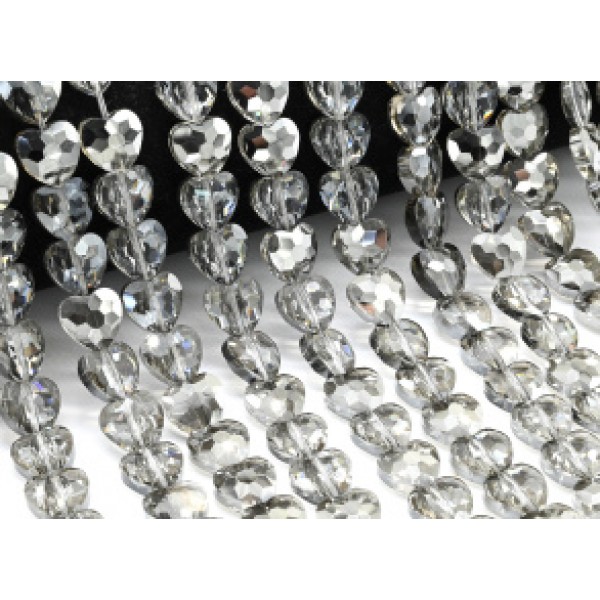 Бусины из циркона сердце 8*8мм цвет дымчатый, 40см, 53 бусины
