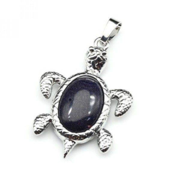 Кулон женская в форме Черепахи 25*35мм с авантюрином синим (иск.)