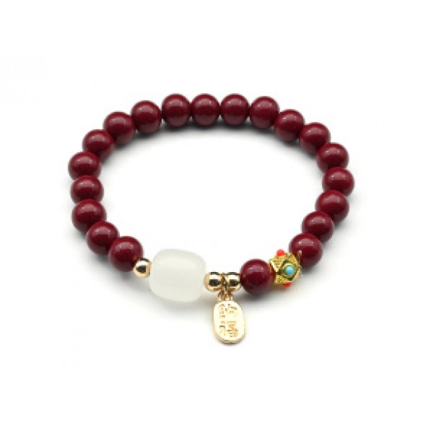 Браслет с подвеской "На удачу" шарик 8мм цвет ягодный, 17см (иск.)