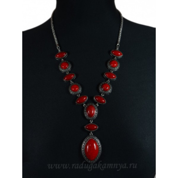 Колье с кораллом искусственным на металлической основе рис 29*41мм, 55см