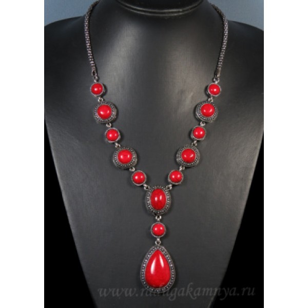 Колье с кораллом искусственным на металлической основе капля 29*40мм, 54см