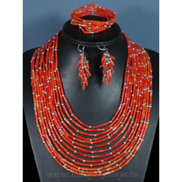 bu27-00556, bu27, bu27-, 27-, 27-00556, бусы_12_нитей_, браслет, _серьги_из_коралла, коралл, бусы_коралл