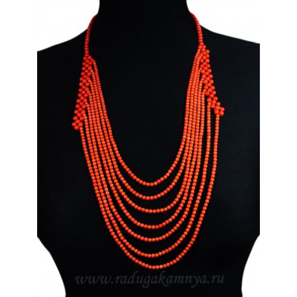 Колье из коралла оранжевого 7нитей шарик 5-4мм, 65см