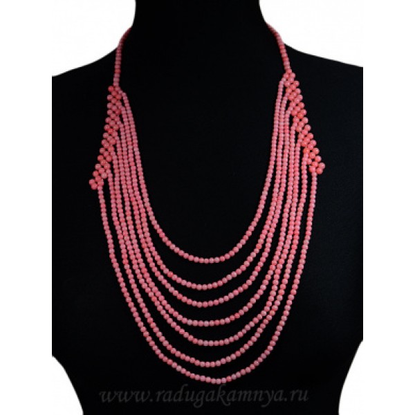 Колье из коралла розового 7нитей шарик 5-4мм, 65см