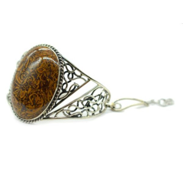 Брошь из яшмы песочной "вензель", основа 70х2.4мм, овал 18х13мм, подвеска цвет коньячный