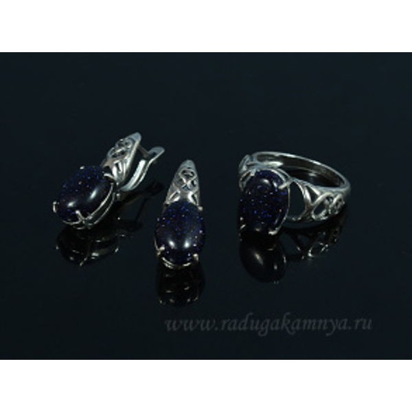 Кольцо и серьги с авантюрином (уткинит),*26мм