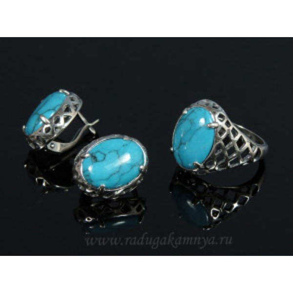 Кольцо с бирюзой (иск.), овал 25х18мм, безразмерно..