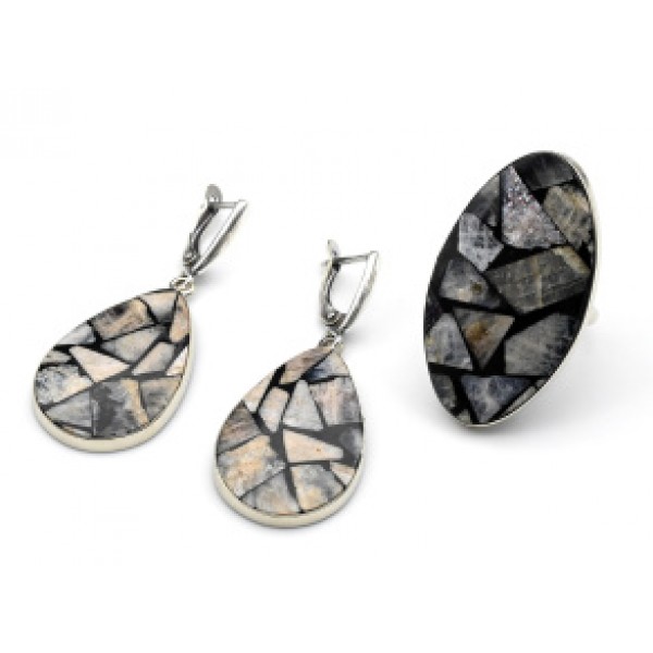 Кольцо и серьги " Мозаика" из беломорита