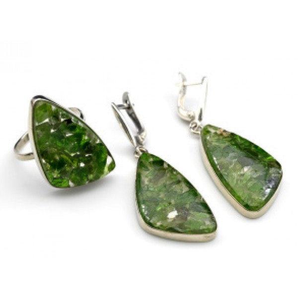 Кольцо и серьги " Мозаика " хромдиопсид
