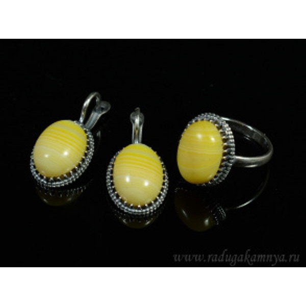 Кольцо и серьги с агатом тонированным, цвет желтый