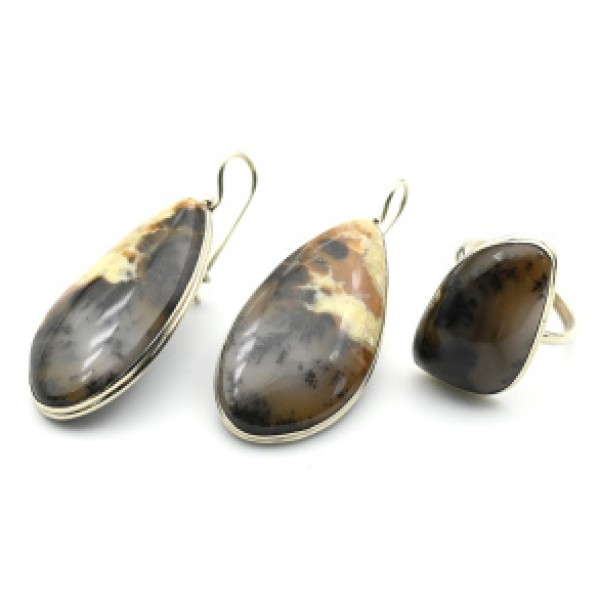 Кольцо и серьги агат моховой