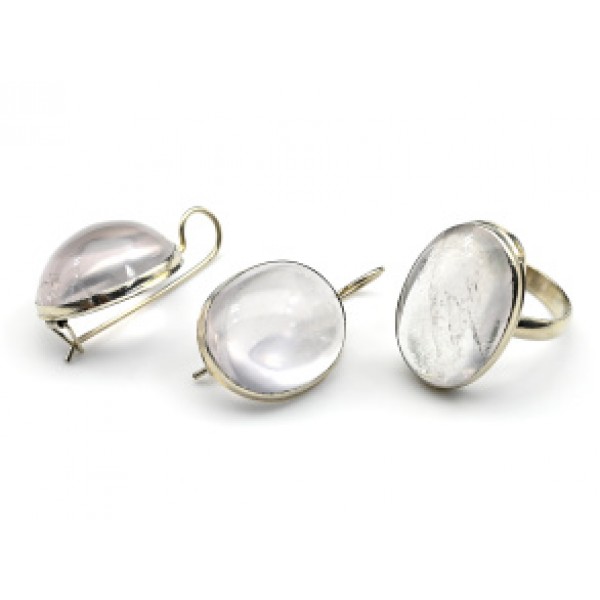 Кольцо и серьги розовый кварц " Овал "