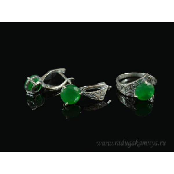 Кольцо и серьги с хризопразом (имитация) (иск.)