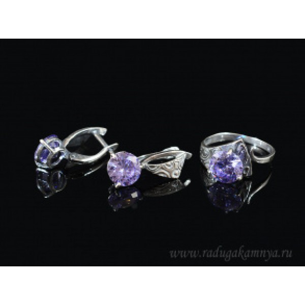 Кольцо и серьги с цирконом искусственным, цвет лаванда (иск.)