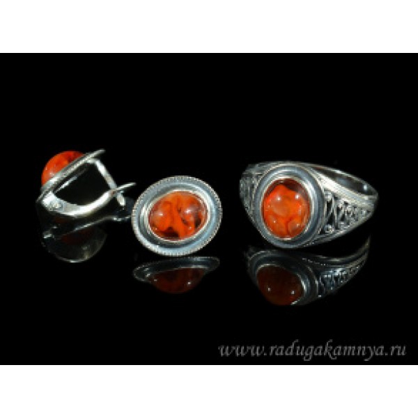 Кольцо и серьги с янтарем (имитация) (иск.)