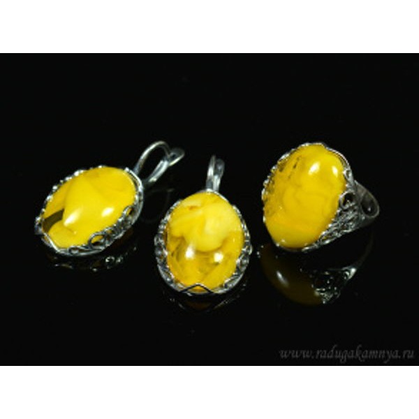 Кольцо и серьги с янтарем (имитация) (иск.)