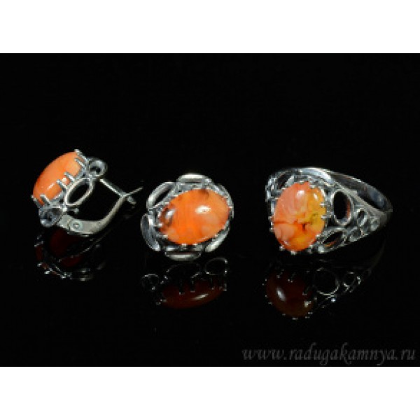 Кольцо и серьги с янтарем (имитация) (иск.)