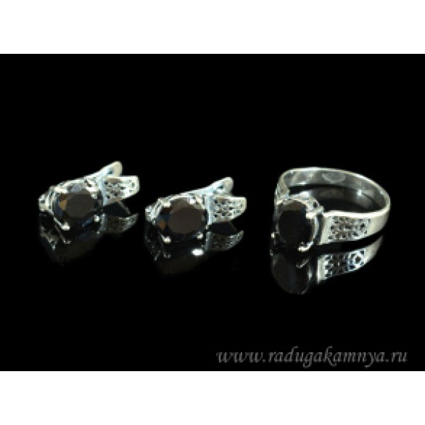 • Кольцо и серьги с цирконом искусственным, цвет черный  (иск.)