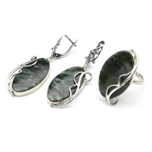 sg67-00184, sg67, sg67-, 67-, 67-00184, кольцо_и_серьги_из_серафинита, клинохлор, серьги_клинохлор