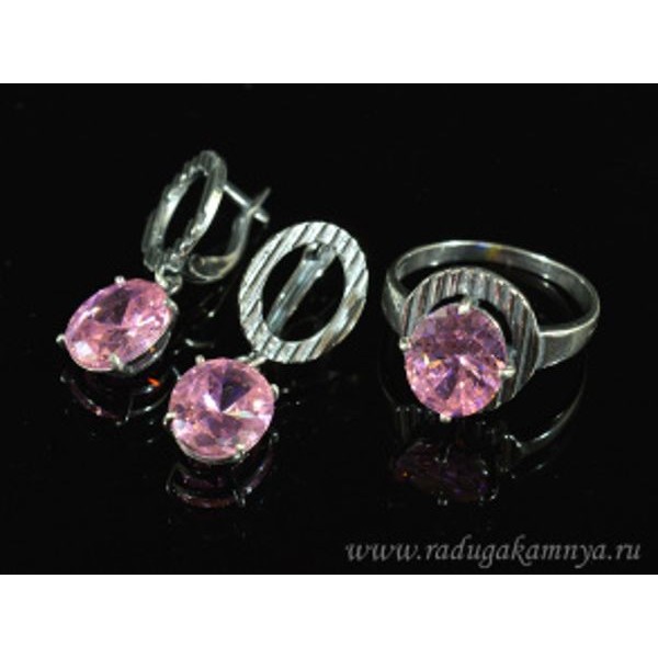Кольцо и серьги с цирконом искусственным, цвет розовый (иск.)