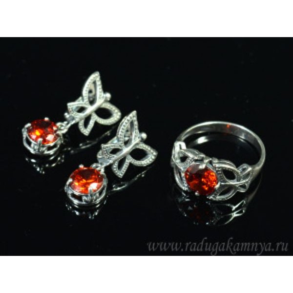 Кольцо и серьги с цирконом искусственным, цвет красный (иск.)