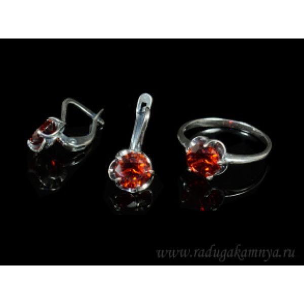 • Кольцо и серьги с цирконом искусственным, цвет красный  (иск.)