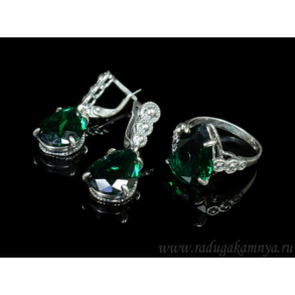 Кольцо и серьги с цирконом искусственным, цвет зеленый (иск.)