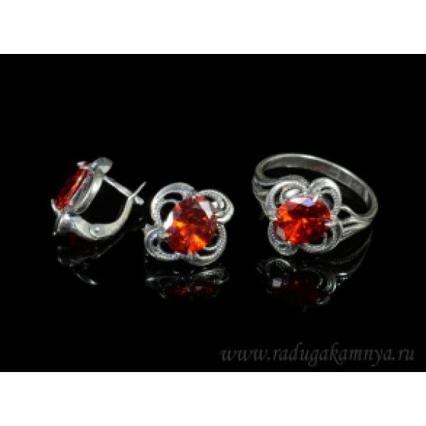 Кольцо и серьги с цирконом искусственным, цвет красный (иск.)