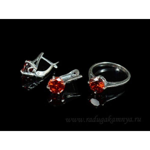 Комплект: кольцо и серьги из циркона, круг с огран..