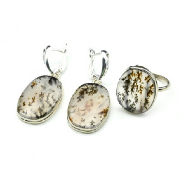 Кольцо и серьги агат моховой "Овал"