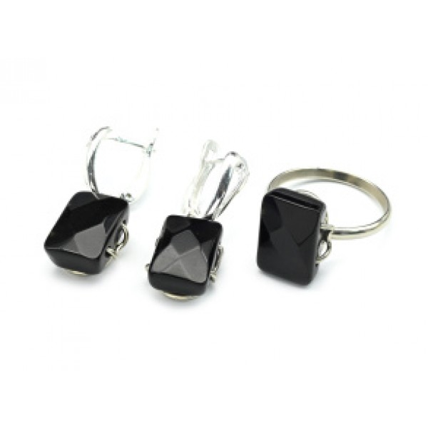 Серьги с камнем агат (имитация), серебристые (иск.)
