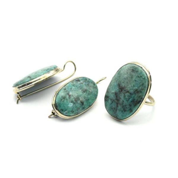 Кольцо и серьги с амазонитом " Прямоугольник "