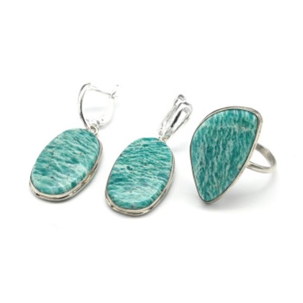 Кольцо и серьги с амазонитом " Прямоугольник "..