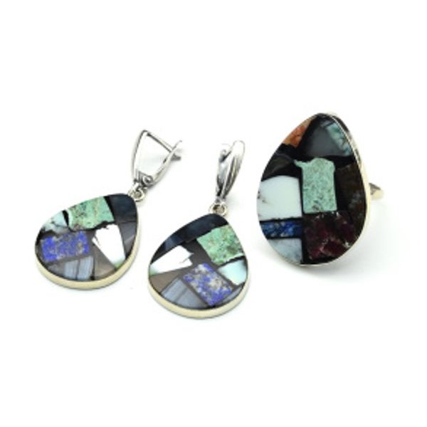 Кольцо и серьги "Мозаика" из самоцветов