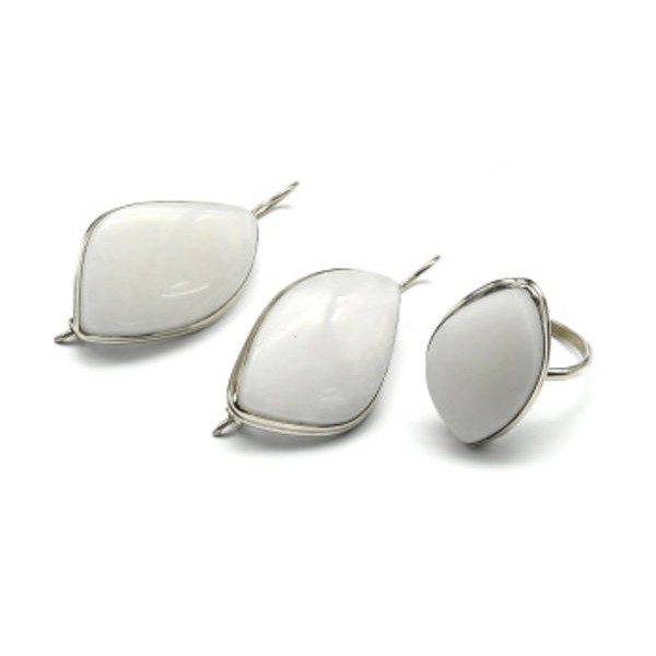 Кольцо и серьги с кварцем (имитация нефрита)