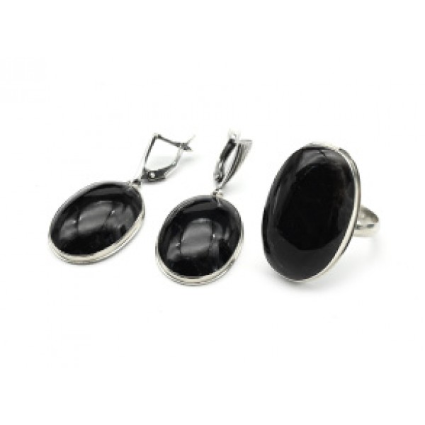 Кольцо и серьги с цирконом искусственным, цвет раухтопаз  (иск.)