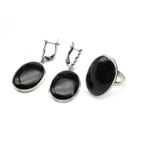 Кольцо и серьги морион "Овал"